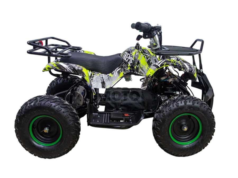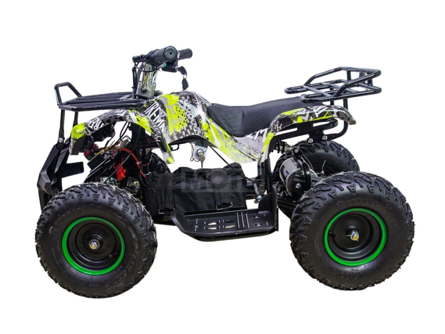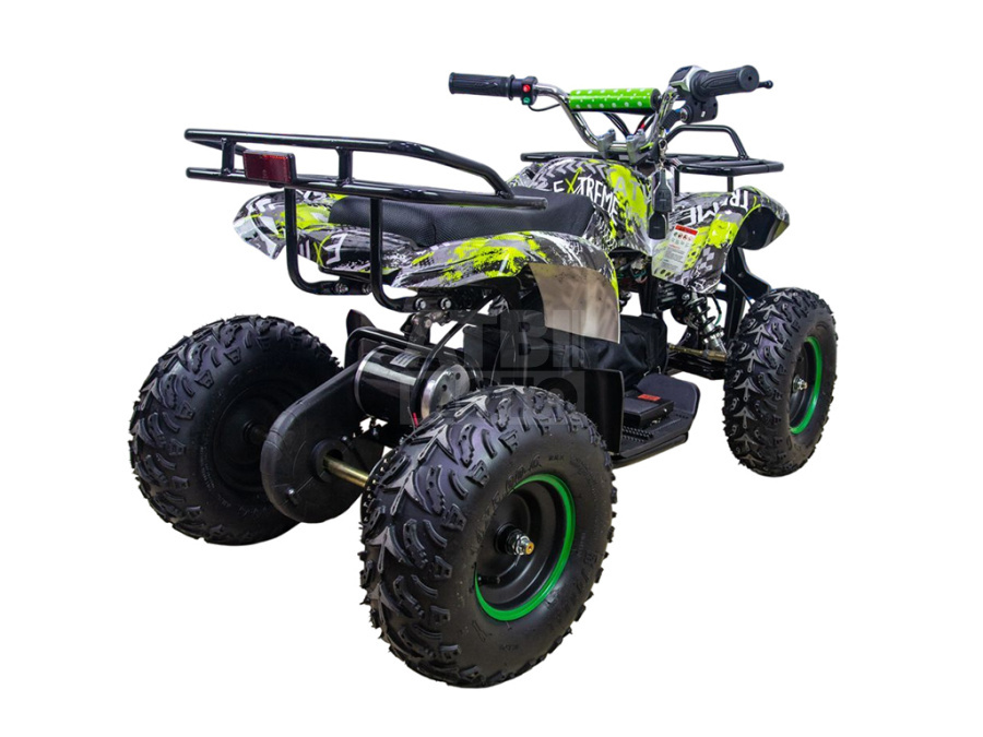 Корпус защищён прочным пластиком, устойчивым к ударам и царапинам. Спереди установлен массивный отбойник, который помогает избежать повреждений при наезде на кусты или столкновении с препятствиями. Благодаря отсутствию выхлопных газов на ATV Classic 1000W можно кататься не только на улице, но и на закрытых площадках, а также хранить дома и не опасаться вредных испарений.